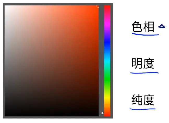 明度是颜色的亮暗、一般来说在拾色器里上亮下暗